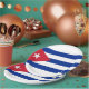 In diesem Design findet man die Nationalflagge Kubas (offiziell die Republik Kuba), ein Land, das die Insel Kuba, die Isla de la Juventud und mehrere kleinere Inselgruppen umfasst. Kuba liegt in der Karibik, wo sich die Karibik, der Golf von Mexiko und der Atlantische Ozean treffen. Die Nationalflagge Kubas besteht aus fünf abwechselnden Streifen (drei blau und zwei weiß) und einem roten gleichseitigen Dreieck am Heck, in dem sich ein weißer 5-Punkte-Stern befindet. Es wurde erstmals 1842 entworfen und 1902 offiziell adoptiert.