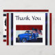 Diese patriotische Veteran Dankeschön-Karte zeigt einen Vintagen LKW mit einer adlerförmigen Fahne an der Tür und die US-Fahne stolz auf die Vorderseite. Die Rückseite hat die adlerförmige Flagge und ein Zitat. Die Farbbandränder, der Adler auf der Rückseite und der Text können nach Belieben geändert oder gelöscht werden.