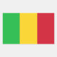 Die Flagge Malis (Französisch: Drapeau du Mali) ist eine Trikolore mit drei gleichen vertikalen Streifen. Von der Hebebühne (wo der Fahnenmast auf die Fahne trifft) sind die Farben grün, gold und rot, die panafrikanischen Farben. Das Flag ist identisch mit dem Flag der Guinea, mit der Ausnahme, dass die Farben in umgekehrter Reihenfolge angeordnet sind. Die aktuelle Flagge wurde am März 1, 1961 adoptiert. Die ursprüngliche Flagge wurde am 4. April 1959 adoptiert, als Mali der Mali-Föderation beitrat. Diese Fahne war die gleiche, außer der goldene Streifen hatte ein menschliches Strichmännchen, ein Kanaga, schwarz, mit Armen, die zum Himmel erhoben wurden. Die Figur wurde aufgrund des Widerstands der islamischen Fundamentalisten entfernt (siehe islamischer Anikonismus, der Glaube an die Herstellung von Bildern der menschlichen Figur). (Mali ist zu etwa 90 % Muslime.) Die Fahne, die 1959 für die Konföderation adoptiert wurde, war eine Imitation der Flagge Ghanas, die jedoch dem Stil des französischen Tricolore folgte. Es wurde mit einem schwarzen Emblem namens Kanaga geändert, einer stylisierten menschlichen Figur. Die Farben sollten eine Einheit mit anderen afrikanischen Nationen widerspiegeln. Nach der Spaltung der beiden Länder im Jahr 1960 wurde die Fahne bis zum 1. März 1961 behalten, als das Kanaga-Emblem abgesetzt wurde.