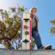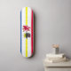 Skateboard mit Variantenflagge von Mecklenburg-Vorpommern; Design mit fünf horizontalen Streifen in Rot, Weiß, Blau und Gelb und mit Abbildungen von Stierkopf und rotem Adler