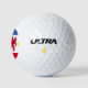 Golfbälle mit variantenreicher Flagge von Mecklenburg-Western Pommern; Design mit fünf horizontalen Streifen in Rot, Weiß, Blau und Gelb, mit Abbildungen von Bullenkopf und Rotadler