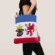 Tote Bag mit variantenreicher Fahne aus Mecklenburg-Western Pommern; Design mit fünf horizontalen Streifen rot, weiß, blau und gelb, mit Abbildungen von Bullenkopf und Rotadler
