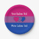 Papierteller mit der Bisexualität Stolz Fahne mit kleinen Herzen in der Mitte des Designs. Rosa, lila und blaue Flagge der Bi-Pride-Bewegung; mit einem bearbeitbaren Textfeld für Ihren Namen oder Ihre Nachricht