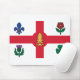 Mousepad mit der Flagge von Montreal, der bevölkerungsreichsten Stadt in der Provinz Quebec, Kanada. Eine weiße Fahne mit rotem Kreuz, eine weiße Kiefer, eine blaue Fleur-de-lys, eine rote Rose Lancaster, ein Kleeblatt und eine Diele