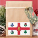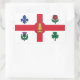 Aufkleber mit der Flagge von Montreal, der bevölkerungsreichsten Stadt in der Provinz Quebec, Kanada. Eine weiße Fahne mit rotem Kreuz, eine weiße Kiefer, eine blaue Fleur-de-lys, eine rote Rose Lancaster, ein Kleeblatt und eine Diele