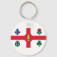 Schlüsselanhänger mit der Fahne von Montreal, der bevölkerungsreichsten Stadt in Quebec, Kanada. Eine weiße Fahne mit rotem Kreuz, eine weiße Kiefer, eine blaue Fleur-de-lys, eine rote Rose Lancaster, ein Kleeblatt und eine Diele