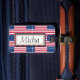 Ein moderner Musterentwurf der amerikanischen Flagge im roten, weißen und blauen US Flagge mit einem zusammenpassenden Nummernschild, zum Ihres Namens, Initialen oder Infos hinzuzufügen.