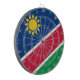 Dieses Design zeigt die Nationalflagge von Namibia (offiziell als Republik Namibia bekannt), einem Land im südlichen Afrika. Namibia grenzt im Norden an Sambia und Angola, im Osten an Botswana und im Süden an Südafrika; im Western grenzt Namibia an den Atlantischen Ozean. Obwohl Namibia nicht an Simbabwe grenzt, trennt weniger als 200 Meter der botswanischen Bank des Zambezi-Flusses die beiden Länder. Die größte Stadt und Hauptstadt Namibias ist Windhoek. Weitere wichtige Städte in Namibia sind Rundu, Walvis Bay, Swakopmund, Oshakati, RehoBeide, Katima Mulilo, Otjiwarongo, Ondangwa und Okahandja.
