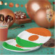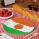 Dieses Design zeigt die Flagge von Niger (offiziell als Republik Niger bekannt), ein Binnenland in Westafrika, benannt nach dem Niger-Fluss. Niger grenzt im Nordosten an Libyen, im Osten an den Tschad, im Süden an Nigeria, im Südwesten an Benin und Burkina Faso, im Westen an Mali und im Nordwesten an Algerien. Niger ist das größte Land in der Region Westafrika. Die Hauptstadt und die größte Stadt ist Niamey, die sich im Südwesten Niger befindet. Weitere wichtige Städte in Niger sind Maradi, Zinder, Tahoua, Agadez, Arlit, Birni-N'Konni, Dosso, Gaya und Tessaoua.
