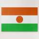 Dieses Design zeigt die Flagge von Niger (offiziell als Republik Niger bekannt), ein Binnenland in Westafrika, benannt nach dem Niger-Fluss. Niger grenzt im Nordosten an Libyen, im Osten an den Tschad, im Süden an Nigeria, im Südwesten an Benin und Burkina Faso, im Westen an Mali und im Nordwesten an Algerien. Niger ist das größte Land in der Region Westafrika. Die Hauptstadt und die größte Stadt ist Niamey, die sich im Südwesten Niger befindet. Weitere wichtige Städte in Niger sind Maradi, Zinder, Tahoua, Agadez, Arlit, Birni-N'Konni, Dosso, Gaya und Tessaoua.
