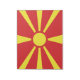 Dieses Design zeigt die Nationalflagge von Nordmakedonien (früher als Mazedonien bekannt und offiziell als die Republik Nordmakedonien bekannt), ein Land in Südosteuropa. Nordmakedonien ist ein Binnenland, das im Nordwesten an das Kosovo grenzt, im Nordosten an Serbien, im Osten an Bulgarien, im Süden an Griechenland und im Westen an Albanien. Das Land erlangte 1991 seine Unabhängigkeit als einer der Nachfolger-Staaten Jugoslawiens. Skopje ist die Hauptstadt und größte Stadt Nordmakedoniens, und es ist Zuhause zu einem Viertel der Bevölkerung des Landes; andere Großstädte in Nordmakedonien sind Bitola, Kumanovo, Prilep, Tetovo, Veles, Štip, Ohrid, Gostivar und Strumica.