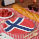 Flagge Norwegens: "Alt for Norge" → "Alles für Norwegen". Die Flagge Norwegens ist rot, mit einem weißen blauen Kreuz.