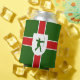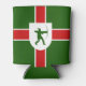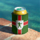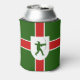 Kann kühler mit Design mit einer Fahne des historischen Landkreises von Nottinghamshire, in England, Großbritannien; grüne Fahne mit rotem Kreuz, mit Inescutcheon mit Abbildung Robin Hood in der Mitte