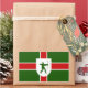 Sticker mit Design mit einer Fahne des historischen Landkreises Nottinghamshire, in England, Großbritannien; grüne Fahne mit rotem Kreuz, mit Ineskutsche mit Abbildung von Robin Hood in der Mitte