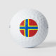 Golf Ball mit der Flagge des historischen Landkreises von Orkney, in Schottland, Großbritannien; rote Flagge mit blauem und gelbem Nordic-Kreuz