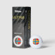 Golf Ball mit der Flagge des historischen Landkreises von Orkney, in Schottland, Großbritannien; rote Flagge mit blauem und gelbem Nordic-Kreuz