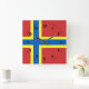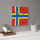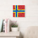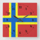 Wall Clock mit Design mit einer Fahne des historischen Landkreises von Orkney, in Schottland, Großbritannien; rote Fahne mit blauem und gelbem nordischem Kreuz