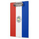 Dieses Design zeigt die Nationalflagge von Paraguay, einem Land in Südamerika. Paraguay grenzt im Süden an Argentinien und im Südwesten an Brasilien, im Osten und Nordosten an Brasilien und im Nordwesten an Bolivien. Paraguay ist eines von nur zwei Binnenländern in Südamerika (das andere ist Bolivien), aber das Land hat Küsten, Strände und Häfen auf den Flüssen Paraguay und Paraná, die Ausfahrt zum Atlantischen Ozean durch die Paraná-Paraguay Wasserstraße. Aufgrund seiner zentralen Lage in Südamerika wird es manchmal als "Corazón de Sudamérica" bezeichnet. Die Hauptstadt und größte Stadt Paraguays ist Asunción; andere Großstädte sind Ciudad del Este, Luque, San Lorenzo, Capiatá, Lambaré, Fernando de la Mora, Limpio, Ñemby und Encarnación.