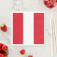 Dieses Design zeigt die Nationalflagge von Peru (offiziell als Republik Peru bekannt), ein Land im Western Südamerika. Peru grenzt im Norden an Ecuador und Kolumbien, im Osten an Brasilien, im Südosten an Bolivien, im Süden an den Chile und im Westen an den Pazifik. Peru ist ein geografisch vielfältiges Land mit Lebensräumen, die von den trockenen Ebenen der pazifischen Küstenregion im Westen bis zu den Gipfeln der Anden-Berge reichen, die sich von Norden bis Südosten des Landes erstrecken; der tropische Regenwald des Amazonasbeckens liegt im Osten neben dem Amazonas Fluss. Die Hauptstadt und größte Stadt Perus ist Lima. Weitere wichtige Städte in Peru sind Arequipa, Trujillo, Chiclayo, Huancayo, Iquitos, Piura, Cusco, Chimbote und Tacna.