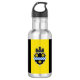 Wasserflasche mit der Flagge der Stadt Pittsburgh, Pennsylvania; Flagge mit drei senkrechten schwarz-gelben Streifen mit der Abbildung von Schloss und Schild in der Mitte