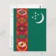 Die Flagge Turkmenistans (Turkmenistan: Türkmenistanyň baýdagy, Т р к н ү м е Auf einem grünen Feld steht eine symbolische Darstellung der berühmten Teppichindustrie des Landes. Es verfügt über ein grünes Feld mit einem senkrechten roten Streifen in der Nähe der Hüftseite, das fünf Teppichguls (Entwürfe zur Herstellung von Teppichen) über zwei gekreuzten Olivenzweigen, ähnlich denen auf der Flagge der Vereinten Nationen, enthält; ein weißer, wachsender Halbmond, typisch für Turkic und Islamische Symbologie, und fünf weiße fünfzackige Sterne erscheinen in der oberen Ecke des Feldes Feldes nur zur Fliege des roten roten Streifen. Die grünen und roten Farben erscheinen in dieser Flagge, weil sie historisch von den Turkmenen verehrt wurden. Der zauberhafte Halbmond symbolisiert die Hoffnung des Landes auf eine strahlende Zukunft und die Sterne repräsentieren die fünf Provinzen (welayatlar) Turkmenistans - Ahal, Balkan, Dashoguz, Lebap und Mary. Die fünf traditionellen Teppichdesigns entlang des Hügels machen die Flagge Turkmenistans zum komplexesten nationalen Flaggendesign der Welt. Sie repräsentieren die fünf großen Stämme oder Häuser und bilden Motive im Staat-Emblem und der Flagge des Landes.