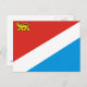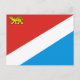 Postkarte mit Flagge Primorsky krai, Flagge mit diagonaler Trifarbe rot, weiß und blau, mit sibirischer Tigerladung im roten Feld