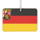 Air Freshener mit der Flagge von Rheinland-Pfalz; Design mit horizontaler Tribfarbe schwarz, rot und gelb (golden), mit dem Wappen des Staat in der oberen links Ecke