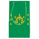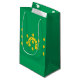 Papiertasche mit Design mit einer Fahne des historischen Landkreises von Rutland in England, Großbritannien; grüne Fahne mit Eicheln und goldenem Hufeisen in der Mitte