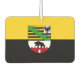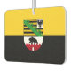 Air Freshener mit variantenreicher Fahne aus Sachsen-Anhalt; Design mit zwei waagerechten gelben (goldenen) und schwarzen Streifen und mit dem Wappen des Staat in der Mitte