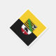 Papierserviette mit variantenreicher Fahne aus Sachsen-Anhalt; Design mit zwei waagerechten gelben (goldenen) und schwarzen Streifen und mit dem Wappen des Staat in der Mitte