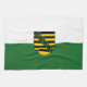 Küchentücher mit variantenreicher sächsischer Flagge; Design mit zwei waagerechten grünen und weißen Streifen und mit dem Wappen des Staat in der Mitte