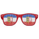 Sonnenbrille mit Variantenflagge Schleswig-Holsteins; Design mit horizontaler Tribfarbe rot, weiß und blau, mit Staat-Wappen in der Mitte