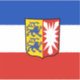 Vinyl Sticker mit Variantenflagge Schleswig-Holsteins; Design mit horizontaler Tribfarbe rot, weiß und blau, mit Staat-Wappen in der Mitte