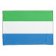 Dieses Design zeigt die Nationalflagge von Sierra Leone (offiziell als Republik Sierra Leone bekannt und informell als Salone bekannt), einem Land an der Südwestküste Westafrikas. Sierra Leone grenzt an Liberia im Südosten und an die Guinea im Nordosten. Das Land Sierra Leone hat ein tropisches Klima mit einer vielfältigen Umgebung von Savanne bis Regenwäldern. Ein Bewohner Sierra Leones ist bekannt als ein Sierra Leones. Die Hauptstadt von Sierra Leone ist Freetown, die auch die größte Stadt des Landes ist. Weitere wichtige Städte und Städte in Sierra Leone sind Bo, Kenema, Makeni, Koidu Town, Lunsar, Port Loko, Pandebu-Tokpombu, Kabala und Waterloo.