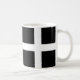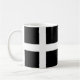 Tasse mit Entwurf mit einer Flagge von historischem Landkreis von Cornwall, in England, Großbritannien; Flagge mit einem weißen Kreuz auf einem schwarzen Feld