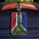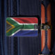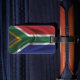 Gepäckanhänger mit der Flagge Südafrikas im gewellten Stoffdesign. Dieses Design besticht durch die südafrikanischen Fahnen-Farben und das Design mit einem schönen, gewebten Stoffeffekt. Dieses Flaggendesign ist eine großartige Möglichkeit, Ihnen zu zeigen, dass Sie stolz sind, aus Südafrika zu sein.