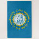 Dieses Design zeigt die Staatsflagge von South Dakota, einem US-Staat im Mittleren Westen der Vereinigten Staaten. Der Name leitet sich von den Ureinwohnern Lakota und Dakota Sioux ab, die einen großen Teil der Bevölkerung ausmachen und historisch das Gebiet dominieren. Als der südliche Teil des ehemaligen Dakota Territoriums wurde South Dakota am 2. November 1889 gleichzeitig mit Nord Dakota Staat. Die Staat-Hauptstadt von South Dakota ist Pierre, während Sioux Falls die größte Stadt des Staat ist. South Dakota ist offiziell als der Staat des Berges Rushmore bekannt, da die kolossale Skulptur, ein wichtiges touristisches Ziel, in die Granitwand der Black Hills in Keystone, South Dakota eingemeißelt wird.