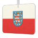 Air Freshener mit variantenreicher Flagge Thüringens; Design mit zwei horizontalen Bändern von rot und weiß und Emblem mit Löwe in der Mitte