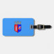 Gepäckmarke mit Design mit der Flagge von Tirana, Hauptstadt Stadt Albanien, blaue Flagge mit Wappen