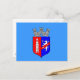 Postkarte mit Design mit der Flagge von Tirana, Hauptstadt Stadt Albanien, blaue Flagge mit Wappen