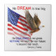 Die amerikanische Flagge und ein Fliegenadler betonen Donald Trump inspirierend Zitat über das Träumen groß. Die patriotischen Farben der Rot-, weißer und Blauerarbeit gut für die der Vereinigten Staaten inspirierenden Wörter 45. Präsidenten.