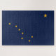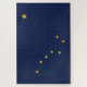 Dieses Design zeigt die Flagge von Alaska, ein Staat im Nordwesten der Westküste der Vereinigten Staaten, direkt gegenüber der Beringstraße aus Asien. Sie ist eine Exklave der Vereinigten Staaten und grenzt an die kanadische Provinz British Columbia und das Territorium von Yukon im Osten und Südosten und hat eine Seegrenze mit dem russischen autonomen Okrug Chukotka im Westen. Im Norden befinden sich die Meere Chukchi und Beaufort des Arktischen Ozeans und im Süden und Südwesten der Pazifik. Die größte Stadt in Alaska in Anchorage, während der Staat Hauptstadt in Juneau. Der Spitzname von Alaska ist "Die letzte Grenze". Die Staatsflagge von Alaska umfasst acht goldene Sterne, die den Großen Wagen und den Polaris bilden, auf einem dunkelblauen Feld.