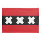 Dieses Design zeichnet sich durch die Flagge der niederländischen Hauptstadt Stadt Amsterdam. Die Fahne zeigt drei Kreuzungen des Heiligen Andreas und basiert auf dem Schnitzel im Wappen von Amsterdam. Designjournalist Roman Mars erklärte es 2015 zur "schlechtesten" Stadtflagge der Welt. AFC Ajax, eine in Amsterdam ansässige Fußballmannschaft, die in der niederländischen Eredivisie spielt, benutzt die Amsterdamer Flagge als Armband ihres Kapitäns. Amsterdam wird umgangssprachlich als das "Venedig des Nordens" bezeichnet, da es sich um eine große Anzahl von Kanälen handelt, die zum UNESCO-Weltkulturerbe gehören.