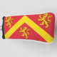 Golf Head Cover mit Design mit einer Fahne des historischen Landkreises von Anglesey, in Wales, Großbritannien; rote Fahne mit gelben Zickzack und drei Löwen; die zugeschriebenen Arme von Hwfa ap Cynddelw, das traditionelle Abzeichen des Landkreises