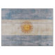 Die Argentinien-Flagge in verblaßter Farbe auf hölzernen Planken ist auf diesem Einzelteil.  Die Staatsflagge von Argentinien ist ein triband, bestanden aus drei gleichmäßig breiten horizontalen Bändern gefärbt hellblau, weiß und hellblau mit einem gelben Sun von Mai war in der Mitte.