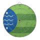 Dartboard mit einem Design mit der Flagge von Bellingham, Washington. Eine grüne und blaue Flagge
