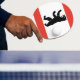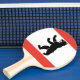 Ping Pong Paddle mit der Flagge Berlins, Staatsflagge mit horizontalen Streifen in rot und weiß, mit einer Abbildung eines schwarzen Bären in der Mitte