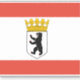 Vinyl Sticker mit variabler Flagge von Berlin, Staatsflagge mit horizontalen Streifen von rot und weiß, mit einer Abbildung eines schwarzen Bären in einem Schild mit einer Krone