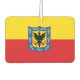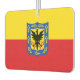 Air Freshener mit Design mit Fahne von Bogota, Hauptstadt Stadt Kolumbien, rot-gelbe Flagge mit Wappen mit Adler in der Mitte