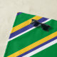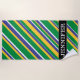 Dieses Badetuch-Ausrüstungsbeschreibungen ein Muster der Streifen (oder der Linien) der verschiedenen Breiten, des farbigen Grüns, des Gelbs, des Blaus oder des Weiß. Diese Farben wurden durch die der nationalen Flagge von Brasilien inspiriert. Es kennzeichnet auch einen kundengebundenen Namen in Weiß farbigem Text innerhalb eines Dunkelheit farbigen Bereichs auf der Front. [~Z0000000]